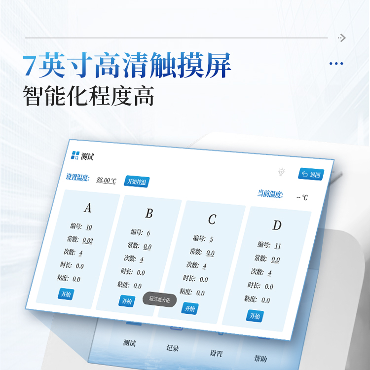 7. 2组粘度管可同时检测,大大提高工作效率,节省实验时间。